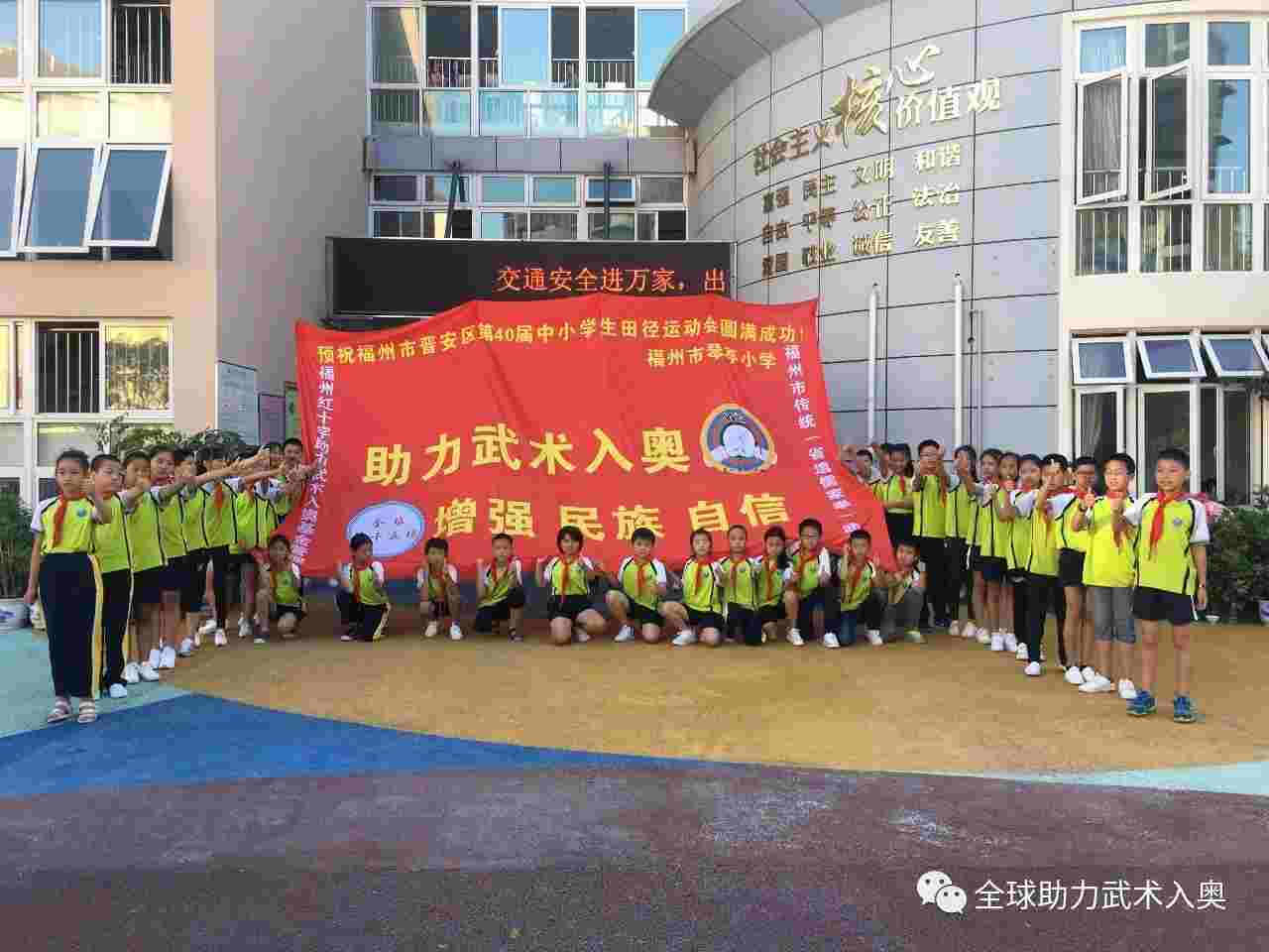 2017年10月19日,福州红十字助力武术入奥基金管理委员会、福州市传统武术协会联合福州市琴亭小学共同助力武术入奥。本次活动预祝福州市晋安区第40届中小学生田径运动会圆满成功!同时本次活动是全球助力武术入奥系列活动的第十五场。活动现场热情澎湃,在张校长的带领下,琴亭小学的学生们共同参与,助力武术入奥,増强民族自信!