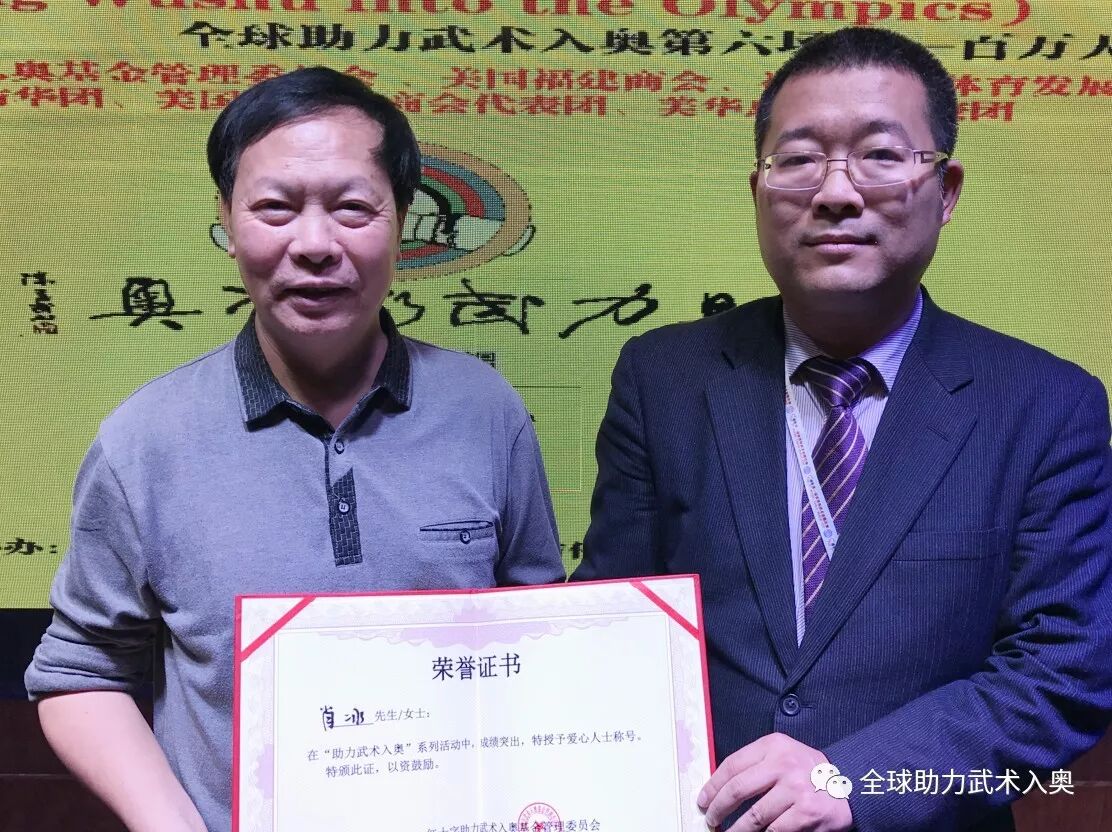 萧冰先生还积极参与推动武术进入奥运会比赛项目,奉献爱心,增强文化自信。萧冰先生表示今后将通过自己的影响呼吁更多的海内外中华儿女一起加入到助力武术入奥的行列,向世界展现中华文化的独特魅力,共同推动中华文化融入世界大舞台。