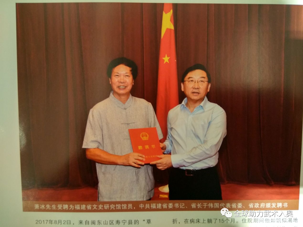 (中共福建省委书记、省长于伟国代表省委、省政府为萧冰颁发聘书)