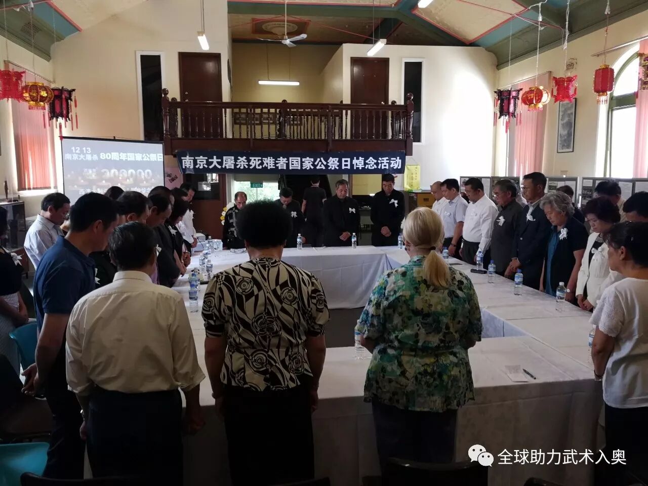今年是南京大屠杀惨案发生80周年。澳大利亚珀斯于当地时间12月13日上午10时,在当地中华会馆为30万死难同胞公祭。共有33个侨团近百名华侨华人参与今天的悼念活动。正值八闽之子助力武术入奥团队在澳大利亚推广武术入奥,团队全体成员参加了此次公祭活动,“我们参与纪念与公祭活动目的是铭记历史,不忘国耻,更加深切地感受国家统一、民族强大的重要性,并尽最大努力共同维护好历史记忆,弘扬以爱国主义教育为核心的民族精神。”