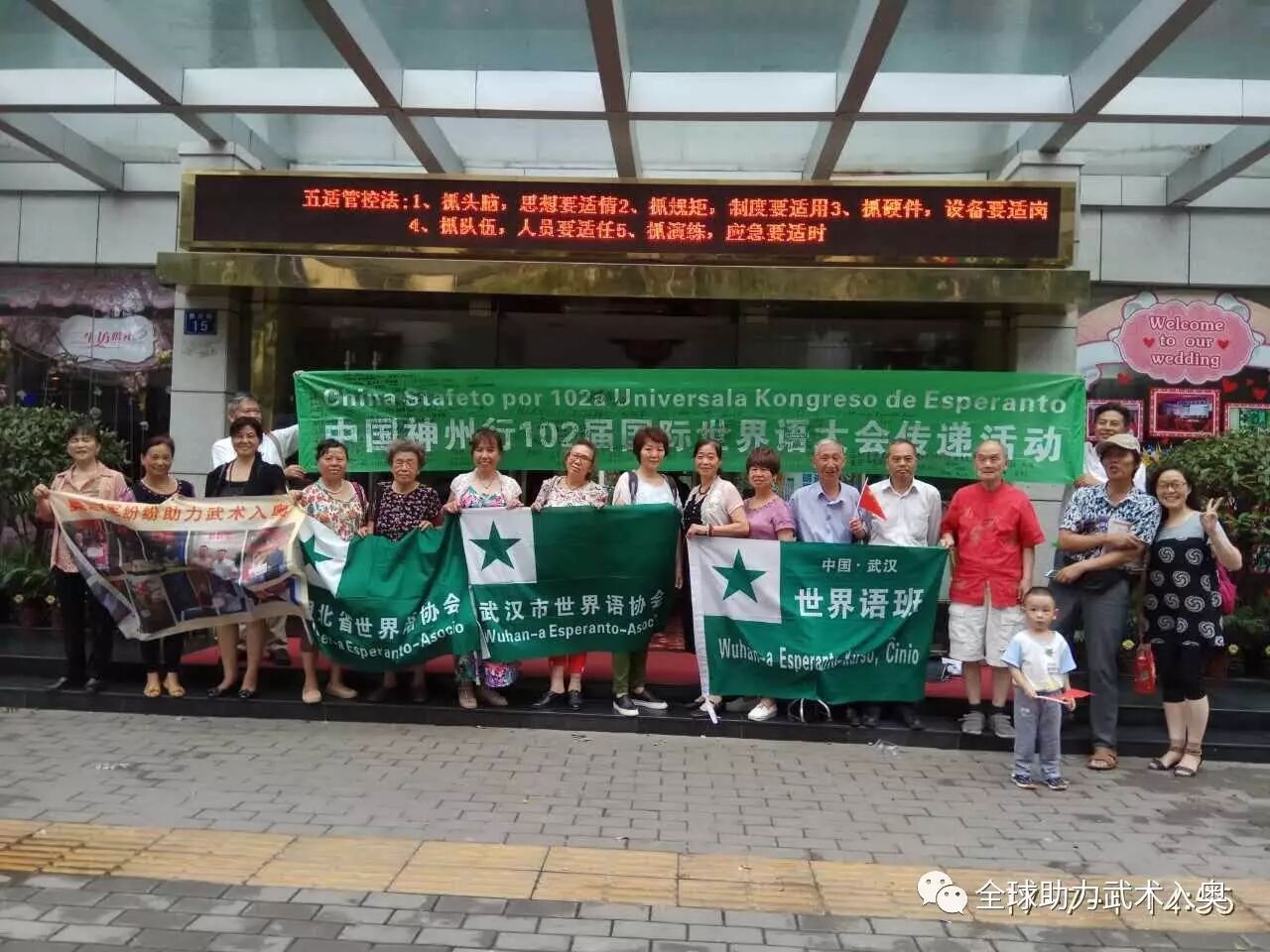 7月1日,湖北省世界语协会在武汉汉市举行迎接第102届国际世界语大会宣传横幅签名活动。