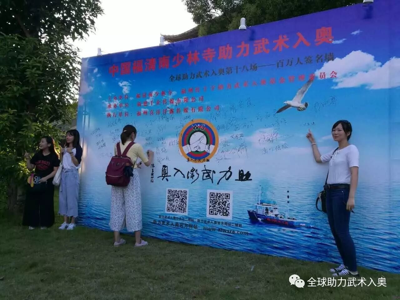 2017年9月16日,福清南少林寺举办助力武术入奥活动。来自日本长崎县的16名大学生在轻松活泼的氛围中与福建的大学生一起学习、了解中国的传统武术文化。参与本次活动的企业家们也以“如何以传统文化助力一带一路”为题,进行了深入探讨。本次活动是全球助力武术入奥公益活动第十八场。
