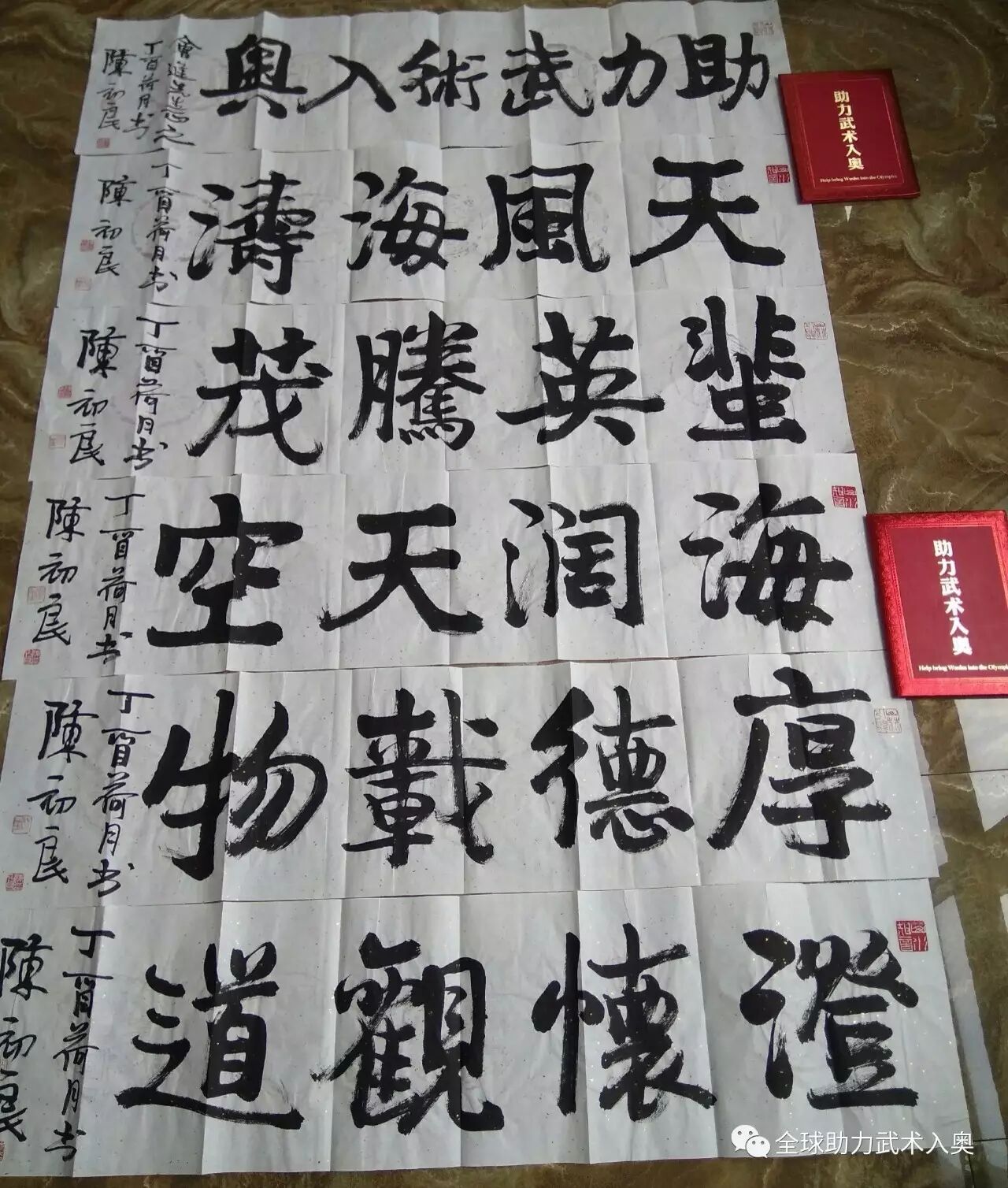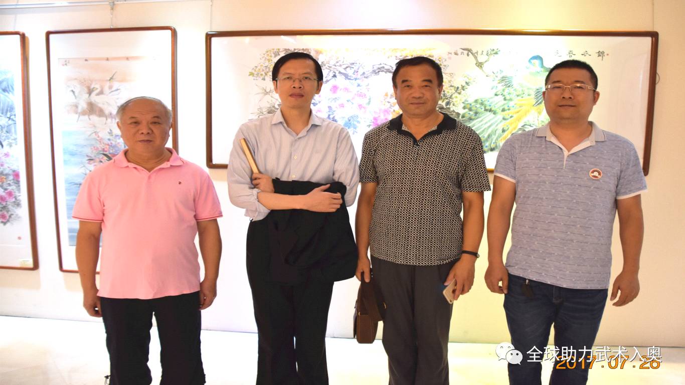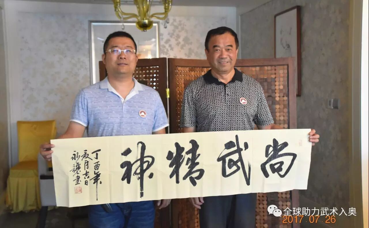 福建省预备役师原政委杨永让、福州市委常委福州军区原政委王爱平、国家一级画家陈初良联袂为助力武术入奥代表团送行,并为台湾友人提供墨宝。