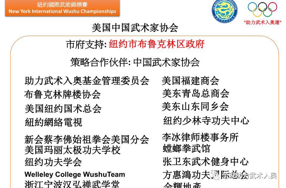 今年12月10日,纽约国际武术锦标赛也将助力武术入奥。全美的华人华侨期盼武术早日入奥。